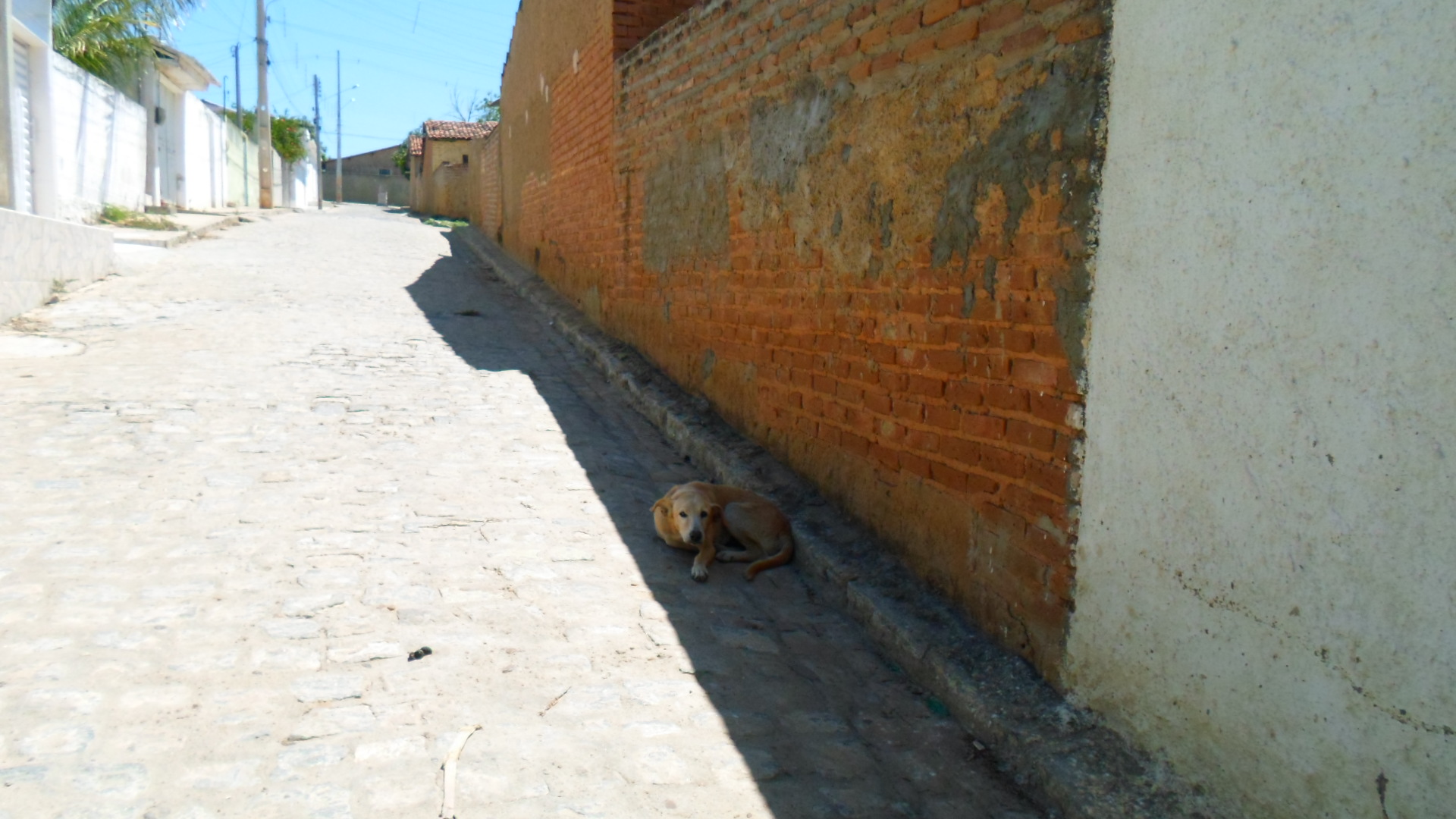 Na Vila Cohab, na rua vizinha a do comunicador Nill Júnior, um cão vira ‘latra” se aproveitou de um bilisquim de sombra, ao lado de uma casa alvenada, porém não rebocada. Oxe!