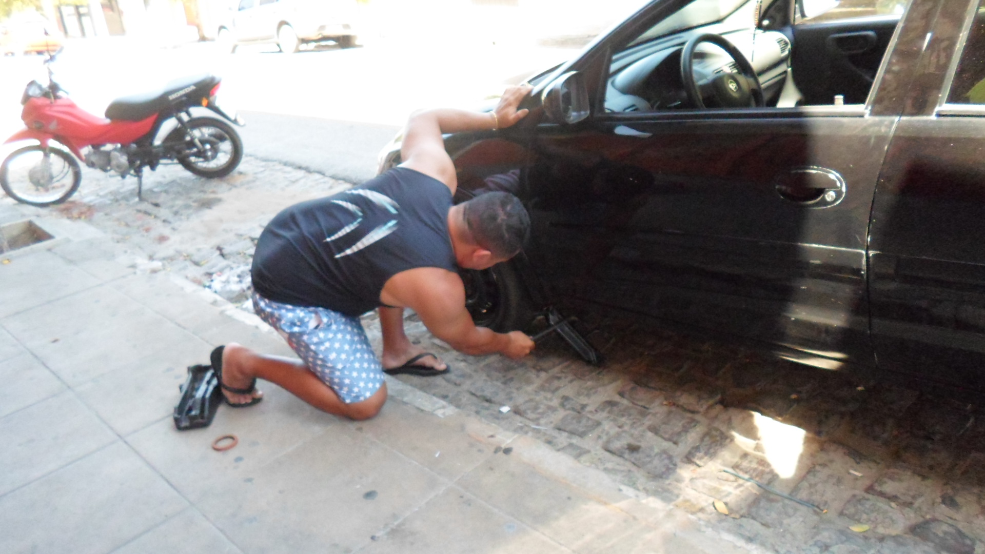 Na Rua barão de Lucena, o comerciante Miguezim do Ouro, suou micula e a beira da papada, trocando o danado de um pneu do possante que amanheceu seco iguá língua de ‘papagaio’.